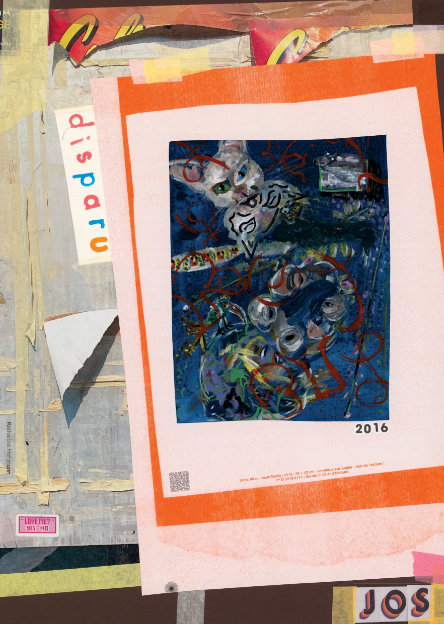 In a three-part project, Katharina Hohmann examines, researches and appropriates the cats from the collections of the Musée d'art et d'histoire (MAH) in Geneva: the result is a series of posters, a cat flap installed in the museum portal and a publication to conclude the project. In early 2026, the animals will become the protagonists of collages distributed throughout the city, reminiscent of the aesthetics of “lost cat” posters. The cat artefacts, pictures and drawings (most of which lie dormant in the museum's depots) reveal their strangeness and their historical and contemporary significance in their diversity. At the same time, a cat flap in the entrance portal of the MAH – somewhere between trompe-l'œil and ready-made – evokes the permeability of the museum collection and underlines the fragility of the museum as an institution. Finally, a publication will round off the project, continue this investigation and conjure up the spirits of the MAH cats.